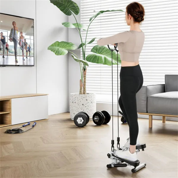 Mini Full Body Stepper - Resistance Bands Included, Adjustable Intensity, LCD Tracker (White)